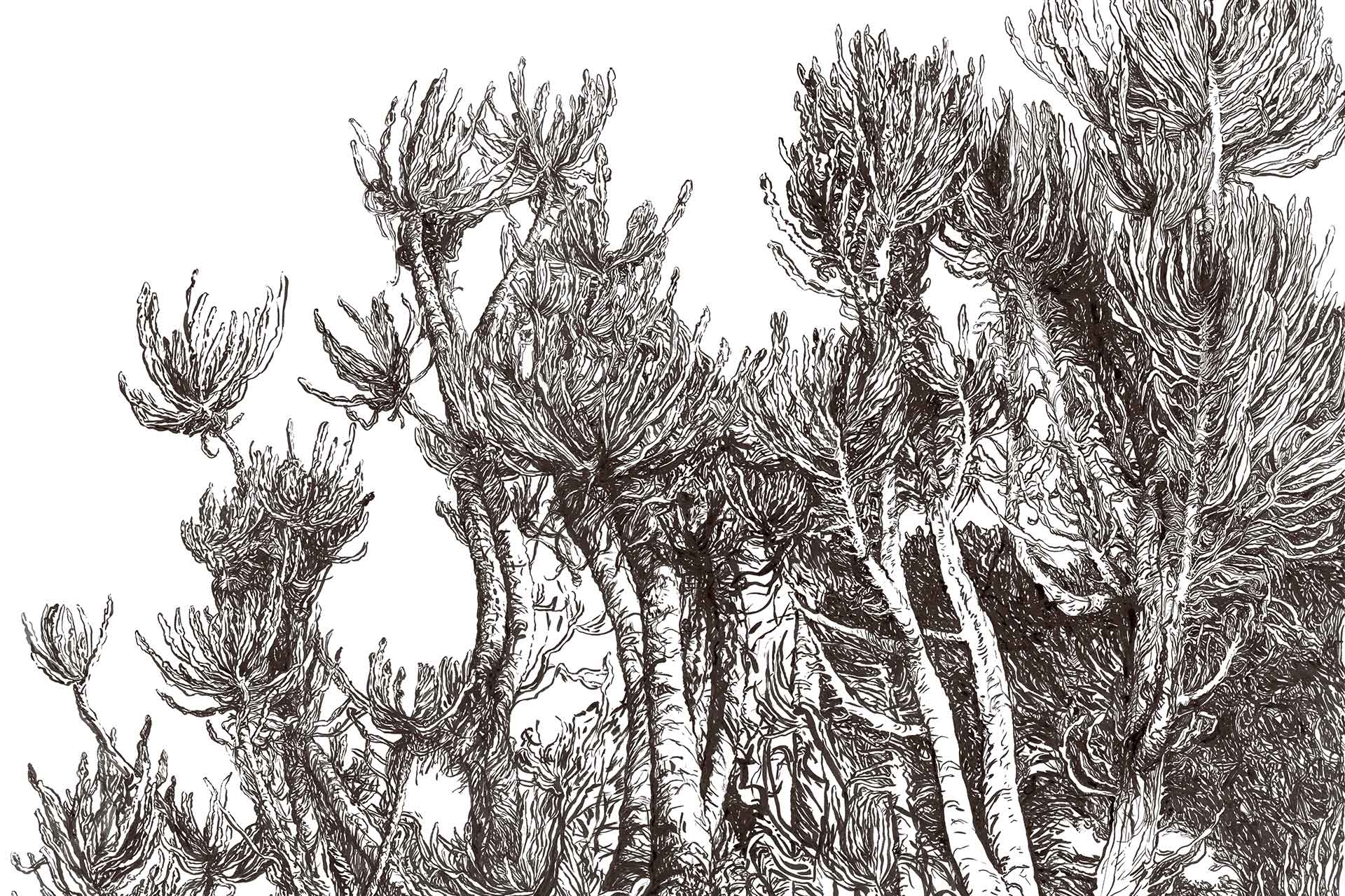 Euphorbia Black Ink Lines is a wallpaper design that forms part of our CS&Co collection. It is by the artist Jolene Olivier. As with all our designs, it will be redesigned to suit your wall size and shape.